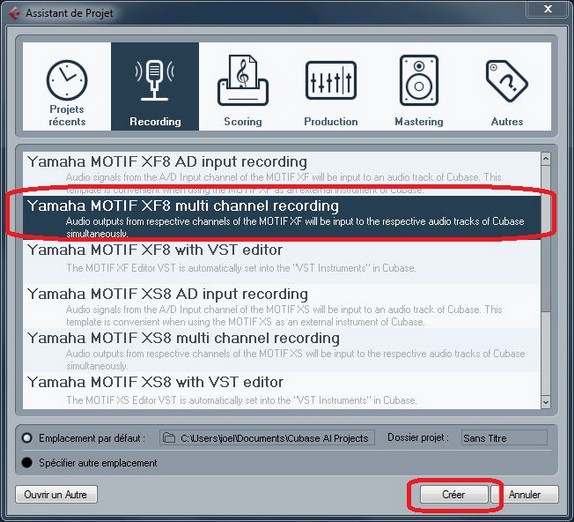 Ouvrons maintenant Cubase, choisissez un projet Yamaha Motif XF_ Multi channel Recording”.