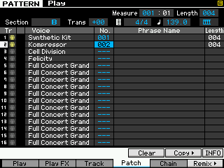 Capture XF Pattern F4 Patch section B, vous pouvez assignez les phrases 001 et 002 :