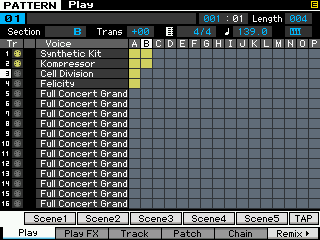 Capture XF Pattern Play section B : vous pouvez voir que les données de phrase sont bien prises en compte :