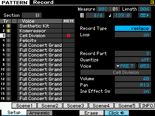 Capture XF Pattern Rec part3 : vous pouvez commencer l'enregistrement de votre part 3 en section B :