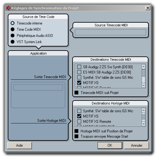 Voici les réglages pour contrôler les touches de transport du Motif XS depuis Cubase AI ou autre.