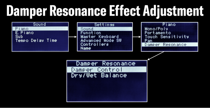 La fonction Damper Resonance se trouve au niveau Live Set [SETTINGS]>Sound>Piano>Damper Resonance :