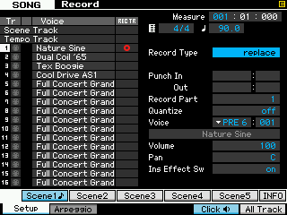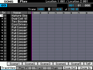 On a donc l'identique d'une performance copiée en song, éditée si besoin par vos soins, reste la gestion des variations d'arpéges gérées en performance par les touches SF1 à 5.