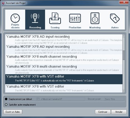 Pour rappel, ces modéles de projets sont disponibles une fois que vous avez installé les extensions Motif XF pour Cubase.