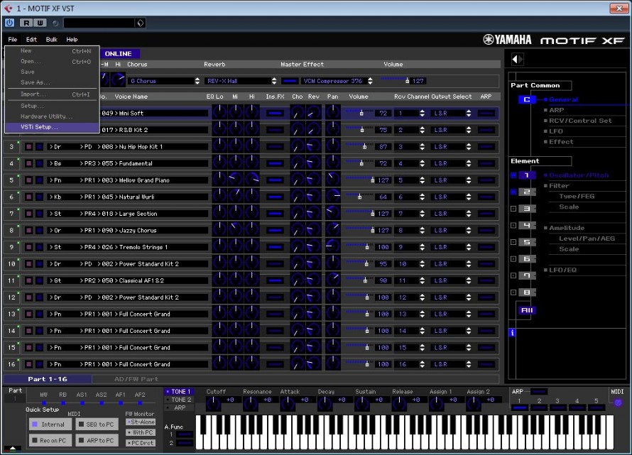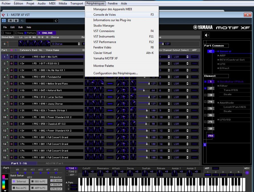 Pour plus d'information sur les VST Editor, les VST Preset non évoqués ici, visitez la page Moessieurs : Motif XF ==> Editeurs XF ==> Yamaha ==> Vidéo VST Editor.