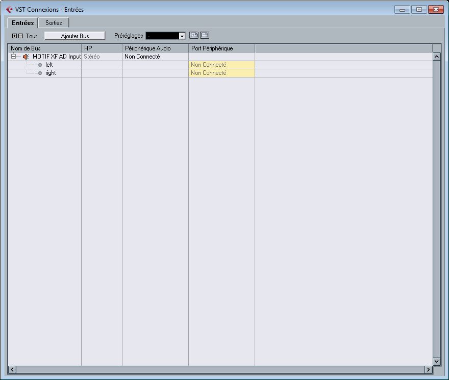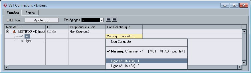 J'ai pris pour exemple ici, le pire de tous les cas, ou il faut assigner intégralement votre carte son dans cubase car ses bus audio ne sont pas visibles dans le VST Editor, c'est le cas n°1.