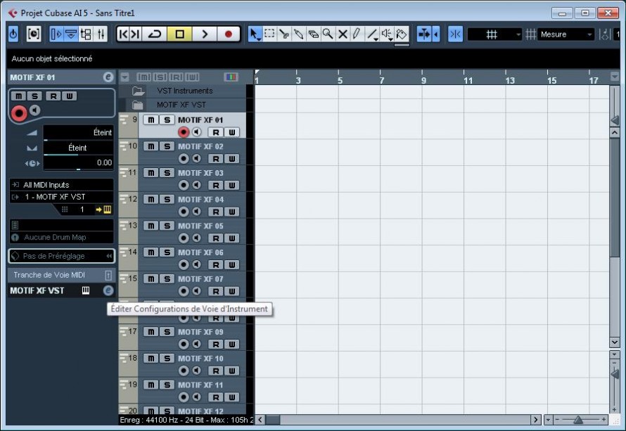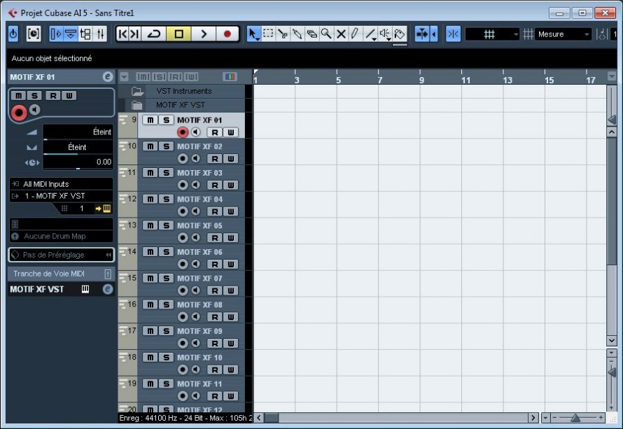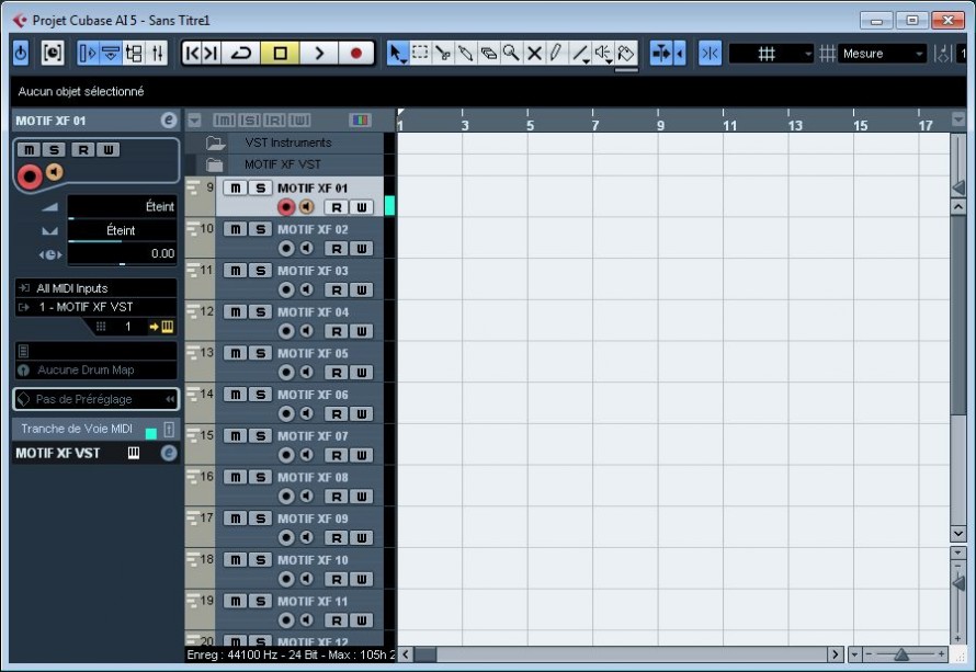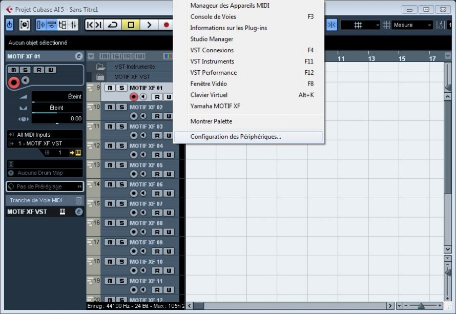 Nous allons commencer par ouvrir un projet Cubase "Motif XF with VST Editor".