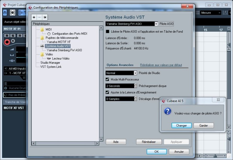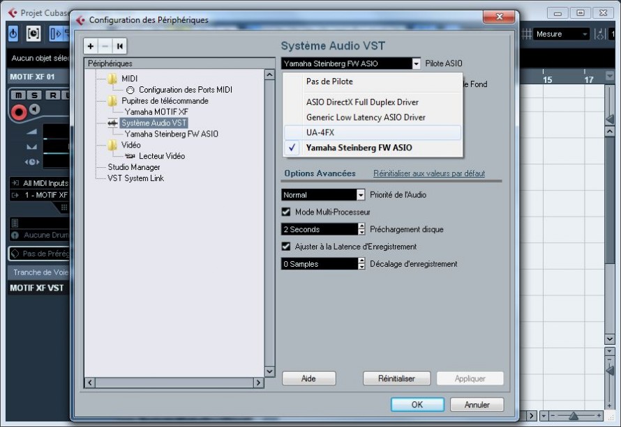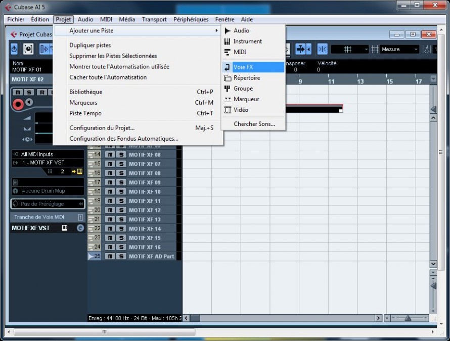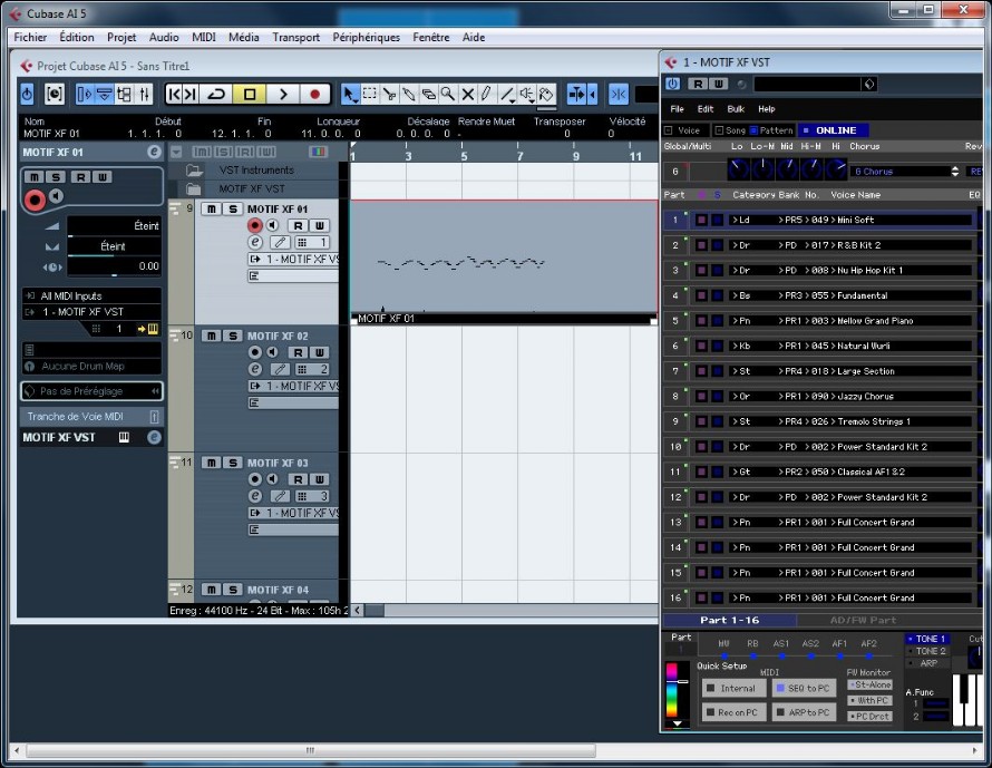 - enregistrer dans le séquenceur du Motif XF les données midi tout en utilisant le VST editor et Cubase pour ses effets.