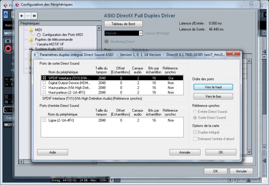 Ce didacticiel relate comment utiliser l'usb midi du Motif XF et enregistrer l'audio via une carte son externe, exemple ici avec une UA4-FX dans cubase AI 5.