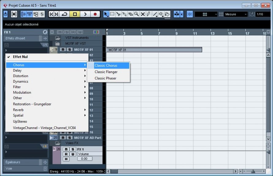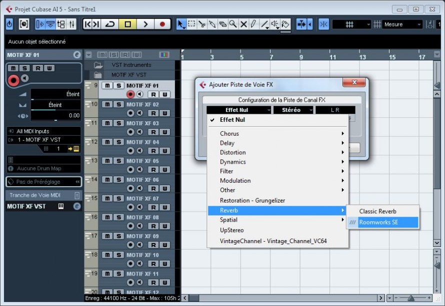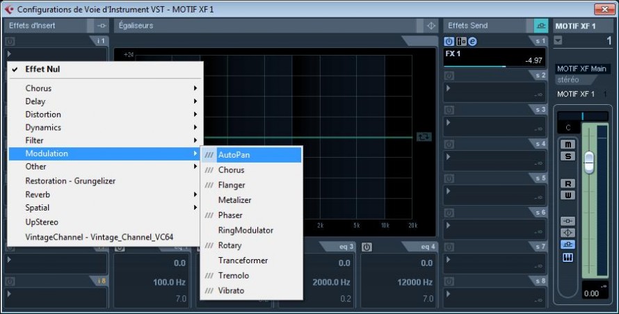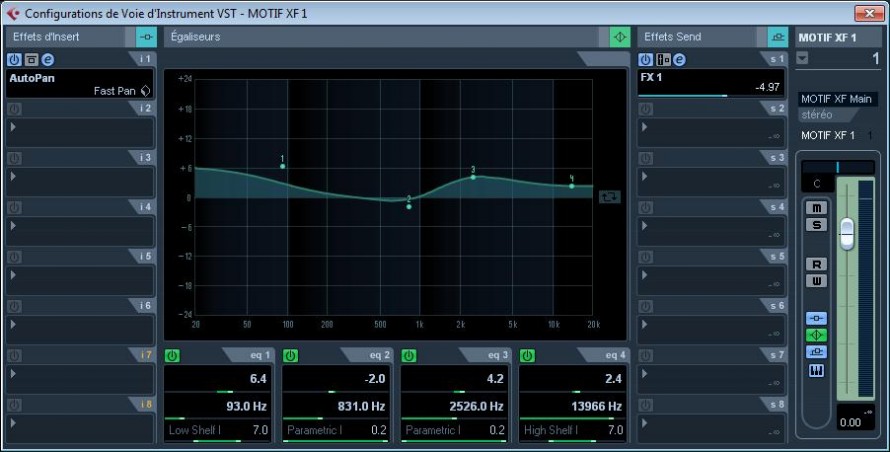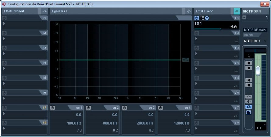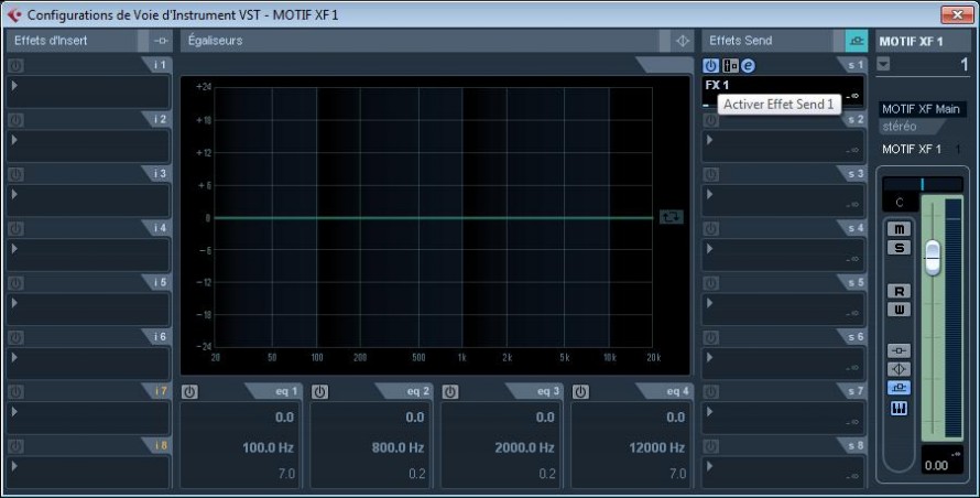 - on peut ainsi tout en étant au stade des donnés midi, appliquer sur les bus du motif XF, les effets de cubase en direct, même avant l'enregistrement des donnés midi, lorsque par exemple vous préparez votre morceau et ainsi enregistrer en une fois un mixage finalisé bénéficiant directement des effets de cubase qui permettent de compenser en grande partie le fait qu'il n'y ait que 8 effets dual insert en simultané dans le mixing du Motif XF.