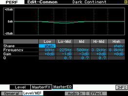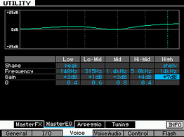 Il en est de même pour le Master Eq qui vous permettra d'adapter la "couleur" sonore générale de votre Motif XF en mode Voice à la pièce où vous en jouer.