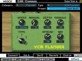 Via la fonction mixing, F6 voice edit, on peut éditer chaque part du mixing et donc les effets d'insertions.