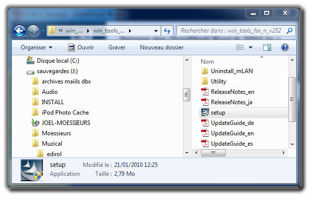 Exemple avec le ntools pour la console n12 sous windows Seven.