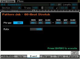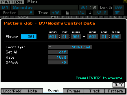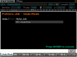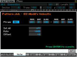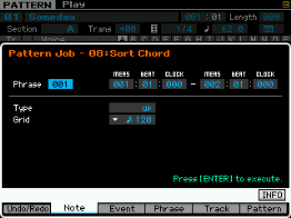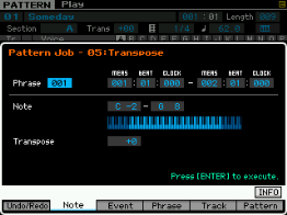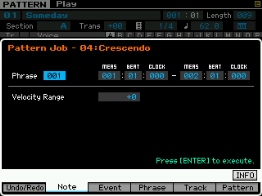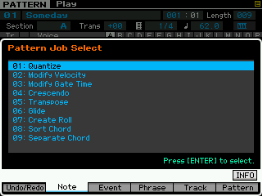 - pour les phrase : on peut copier une phrase, échanger le contenu de deux phrases, mixer deux phrase, coller deux phrases, découper une phrase, prendre une partie d'une song pour en faire une phrase en pattern, transformer une phrase en arpège, effacer une phrase.