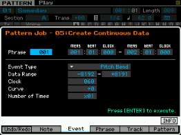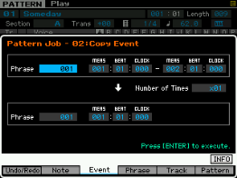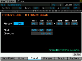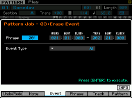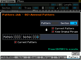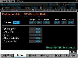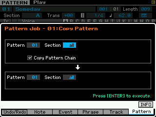 Vous pouvez ici copier l'intégralité d'une Pattern, découper une section de pattern, coller des sections de Pattern et effacer une Pattern.